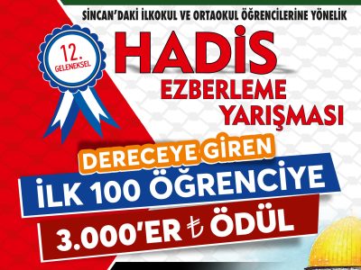 Çatı-Der2026-01-05T16:24:46+03:00ÇATI – DER SİNCAN’DA ÖĞRENİM GÖREN İLKOKUL ve ORTAOKUL(3-4-5-6-7-8.SINIF) ÖĞRENCİLERİ ARASINDA HADİS EZBERLEME YARIŞMASI ÇATI – DER olarak 12.'sini gerçekleştireceğimiz HADİS EZBERLEME YARIŞMASI’nın amacı; Hz. Peygamber (SAV)’in günlük yaşama dair sözleri ile öğrencilerimizin bilinçlenmesi, Allah...